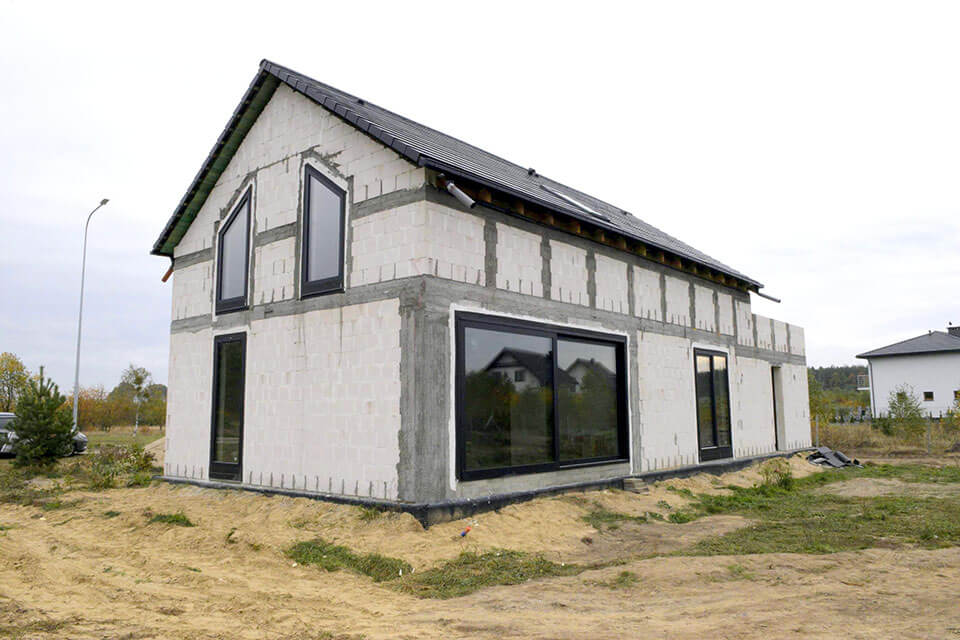 Stan surowy zamknięty to etap, w którym budynek nabiera swojej pełnej formy. Realizujemy konstrukcję wraz z dachem, oknami i drzwiami, dzięki czemu obiekt jest zabezpieczony przed warunkami zewnętrznymi i gotowy do dalszych prac wykończeniowych.