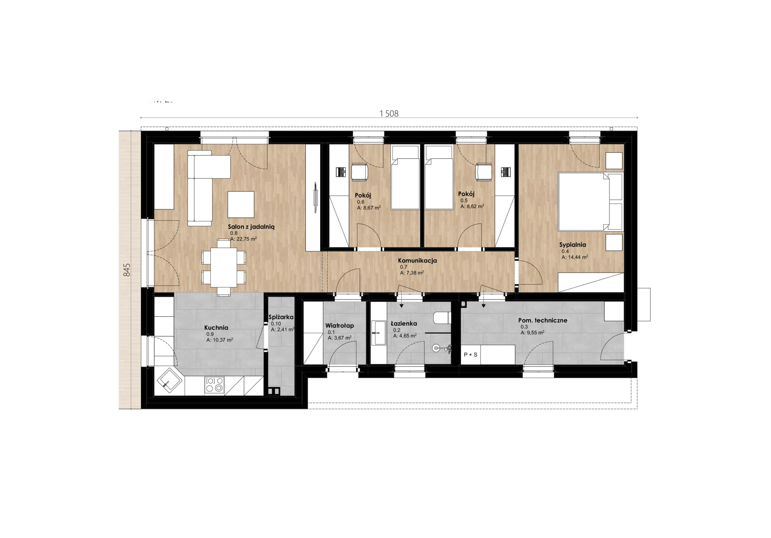 5. Elewacja tynk gładki zamiennie deska elewacyjna, modrzew