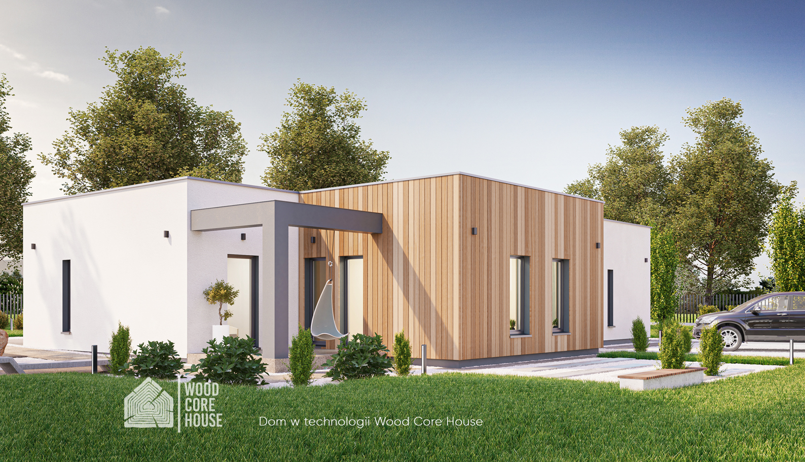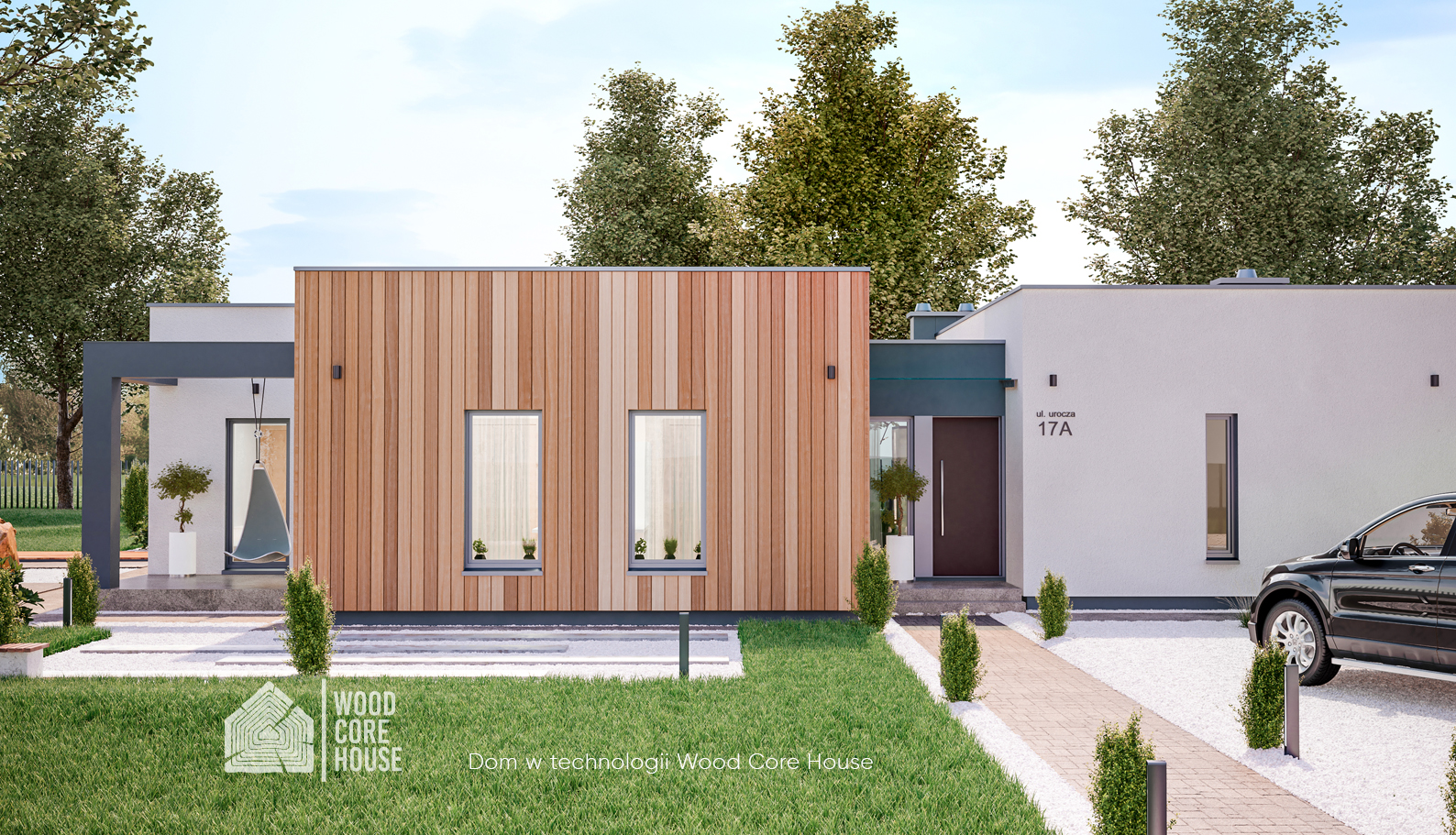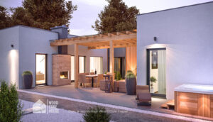 5. Elewacja tynk gładki zamiennie deska elewacyjna, modrzew