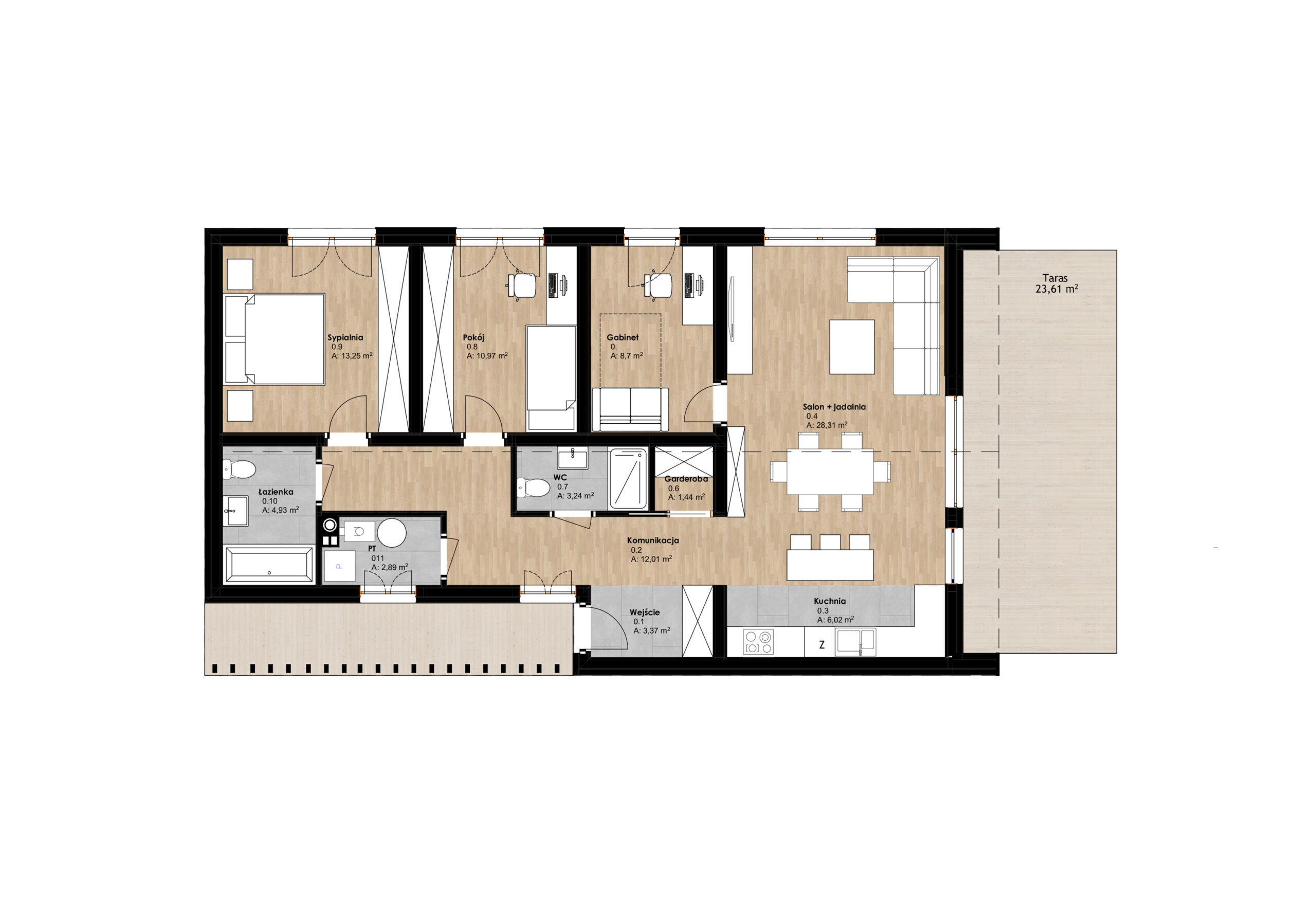 5. Elewacja tynk gładki zamiennie deska elewacyjna, modrzew