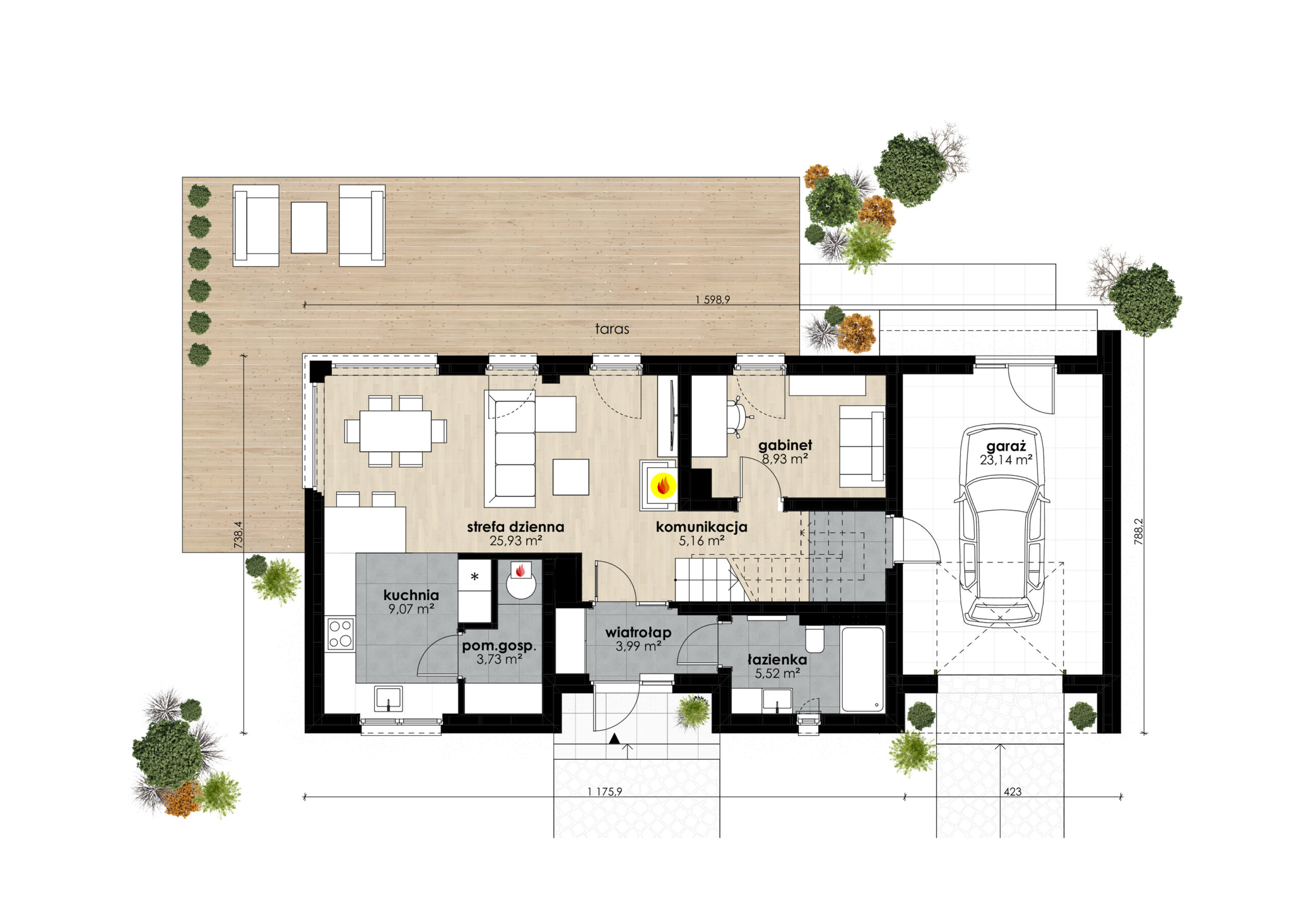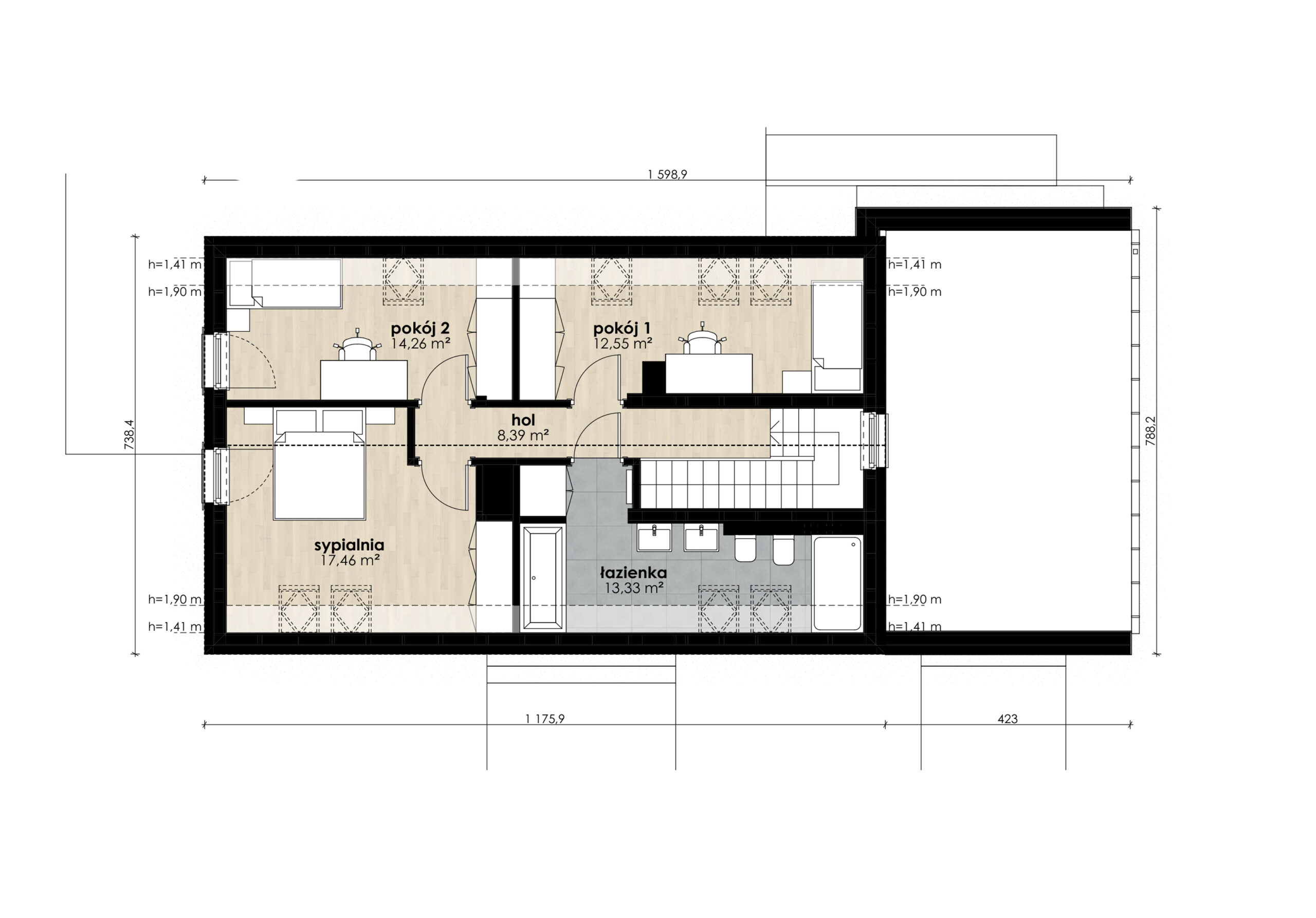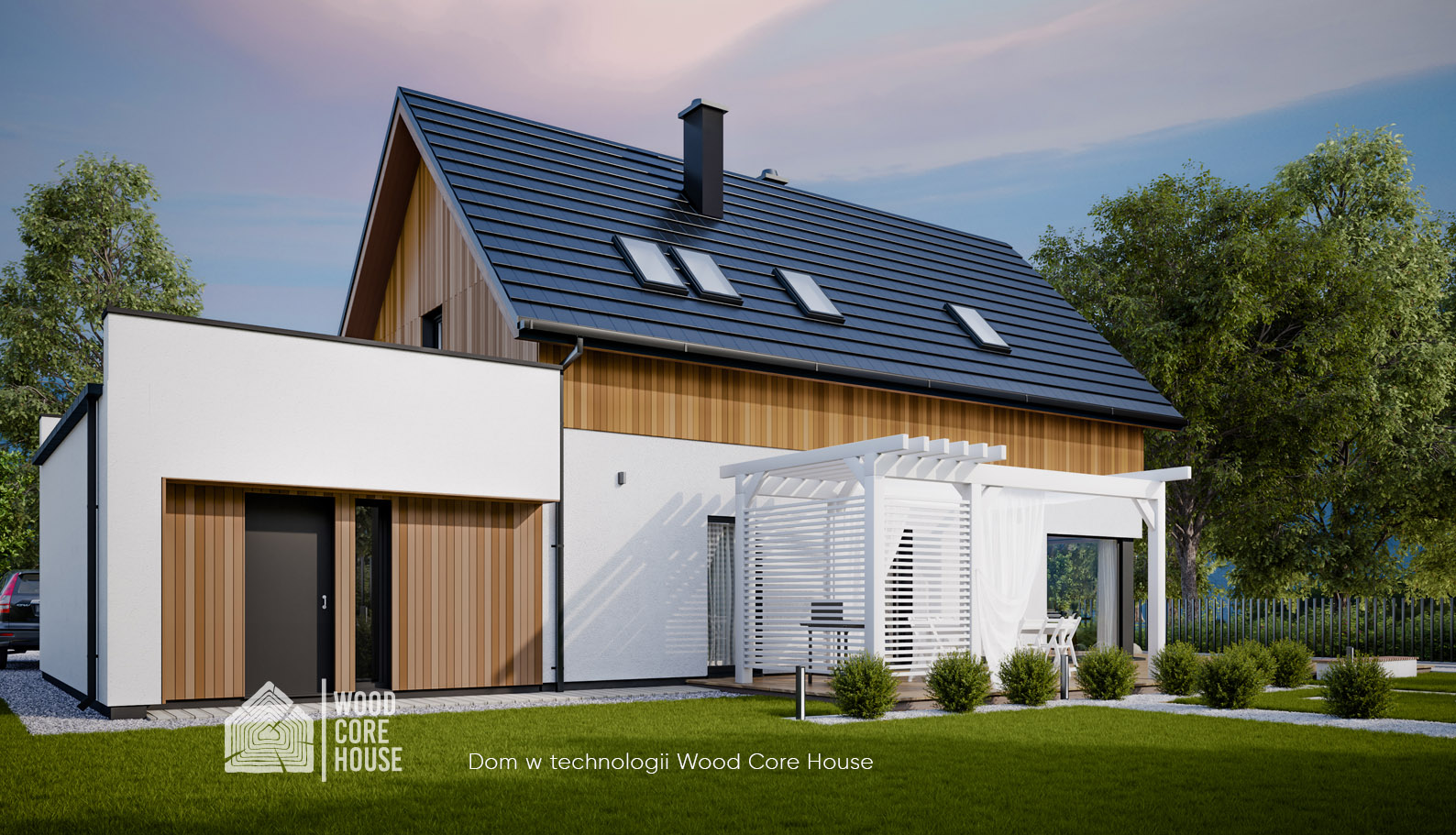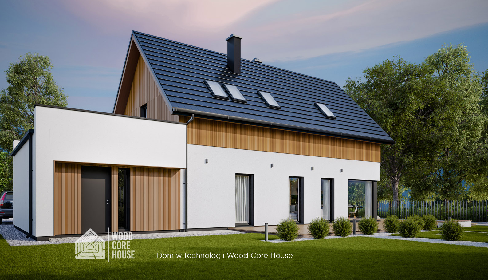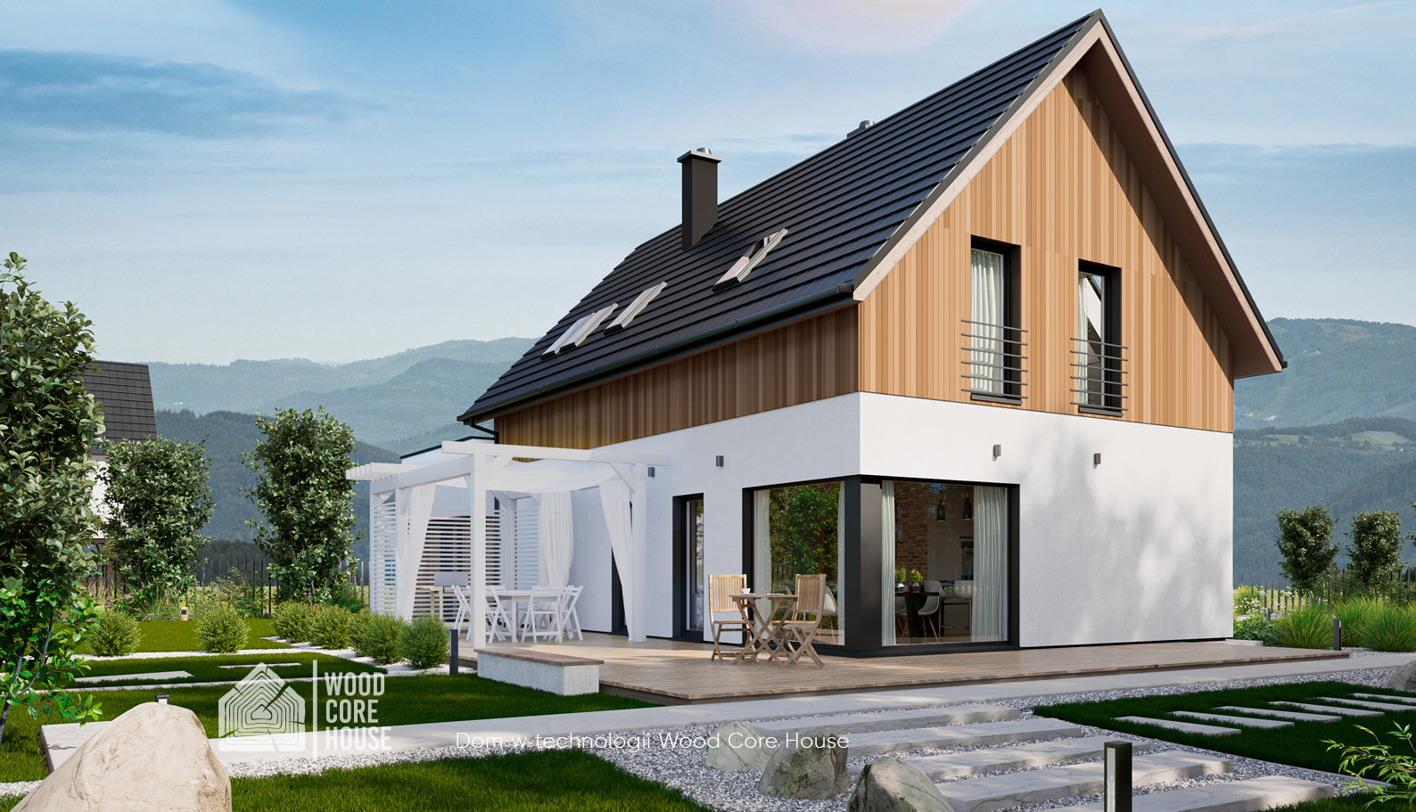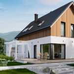 5. Elewacja tynk gładki zamiennie deska elewacyjna, modrzew