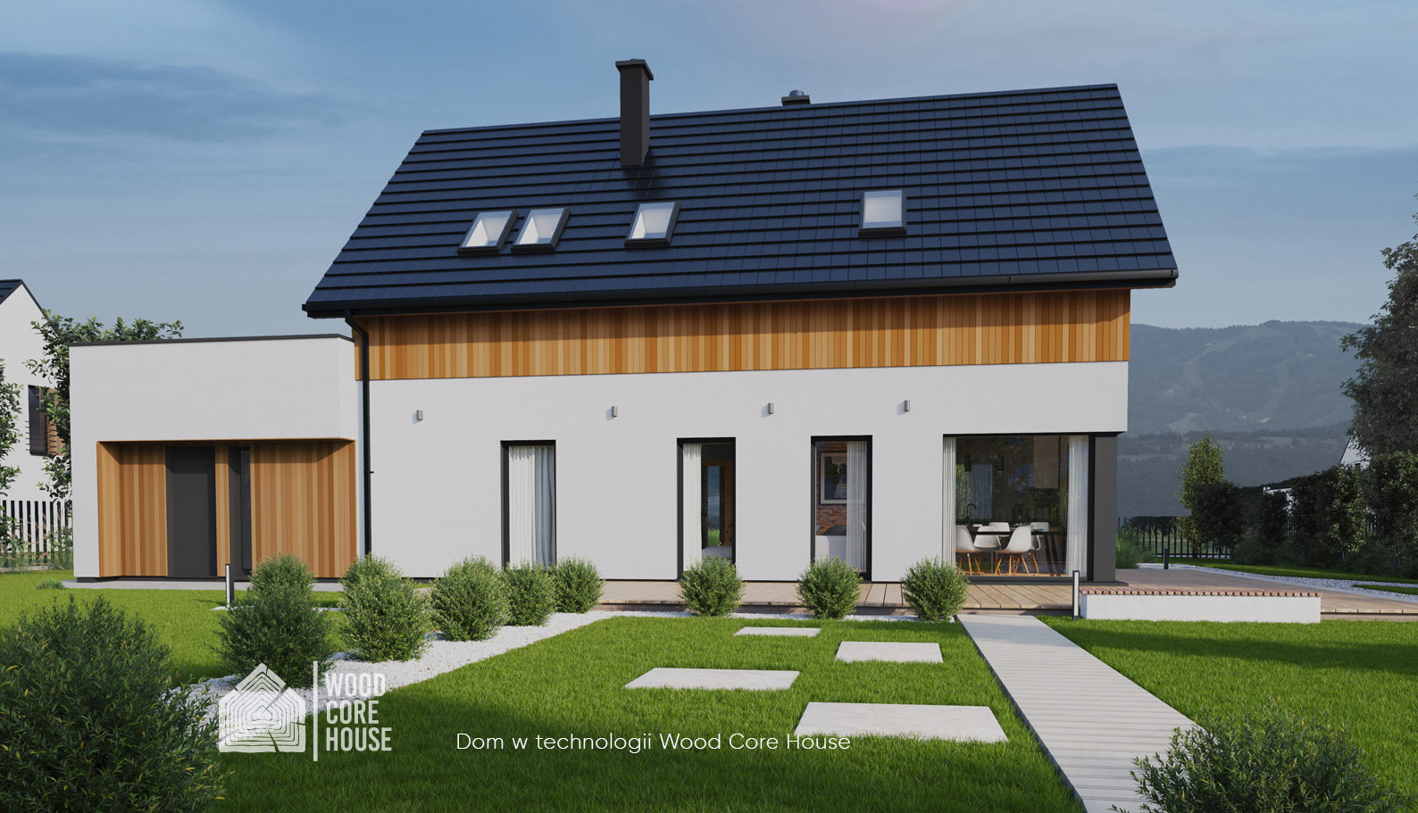 1. Konstrukcja budynku (ściany zewnętrzne, nośne, strop, więźba dachowa) w technologii WCH wraz z montażem